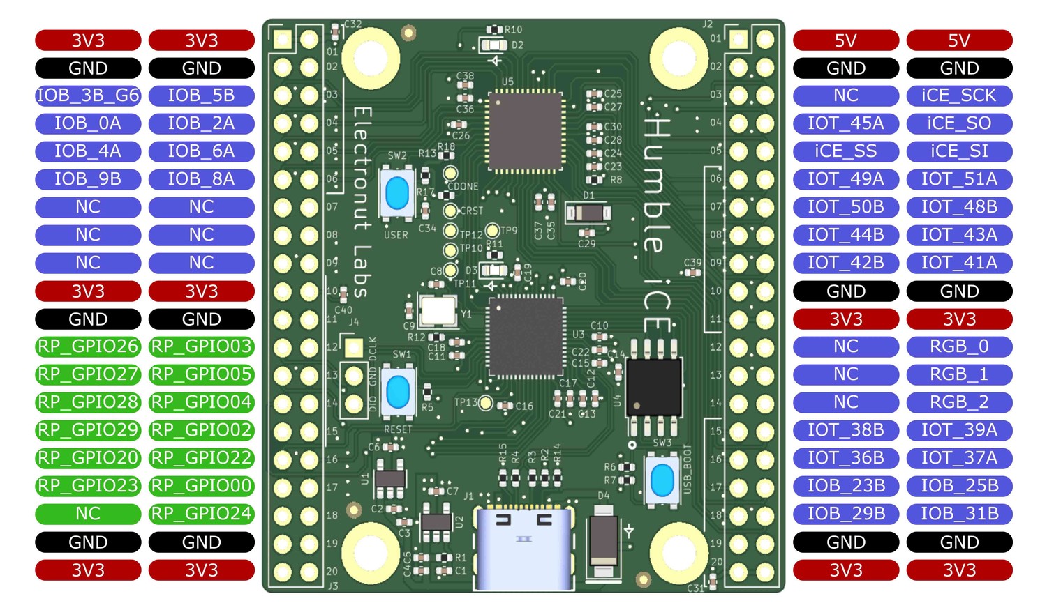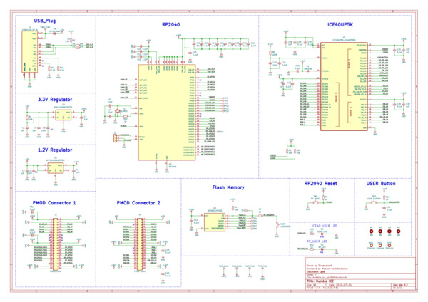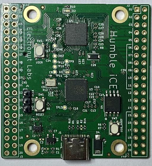 Electronut Labs представили новую отладочную плату Humble iCE, которая включает в себя Lattice iCE40UP5k и Raspberry Pi RP2040.