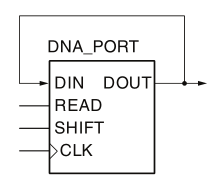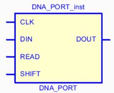 Аппаратный модуль DNA_PORT позволяет получить доступ к DNA-номеру кристалла. Различные варианты графического отображения соответствующего блока приведены на рисунке 1.