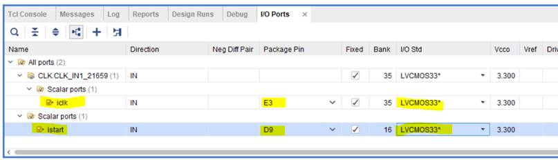 Установите значения для iclk и istart в соответствии с рисунком 43 и сохраните изменения.