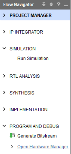 После окончания генерации файла прошивки FPGA открываем Hardware Manager: