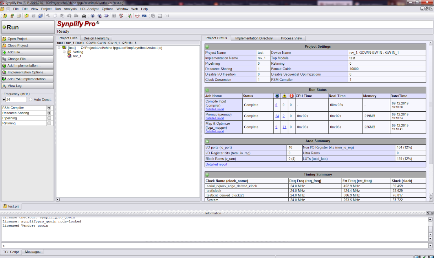 Начиная с этого момента “вечер перестал быть томным”, китаец начал показывать свой норов, а синтезатор вывалил кучу предупреждений, часть из которых, надо отдать должное, была исключительно по существу вопроса. Как уже, наверное, стало понятно китаец для синтеза и размещения использует Synplify.