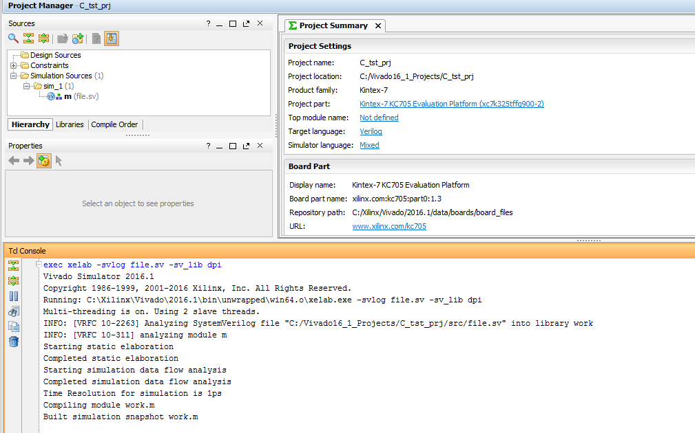 Done linking: "<Путь к папке проекта>/C_tst_prj/src/xsim.dir/xsc/dpi.so"