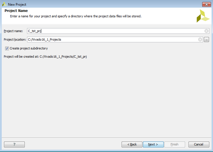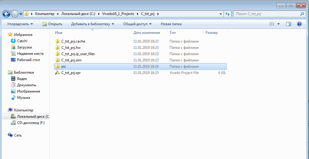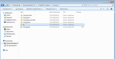 1) В tcl консоли переходим в папку с исходниками (в моем случает это:”cd C:/Vivado16_1_Projects/C_tst_prj/src/”)