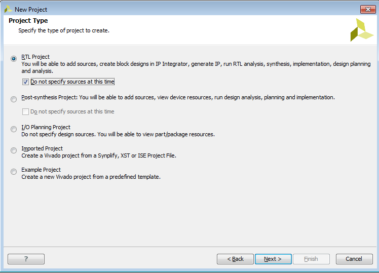 e) Выбираем rtl-проект, ставим галку в указанном поле