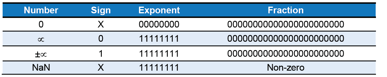 Как мы видим из таблицы выше, представление NaN - это экспонента, "забитая" единицами, и ненулевое представление дробной части (она же мантисса, она же fraction).