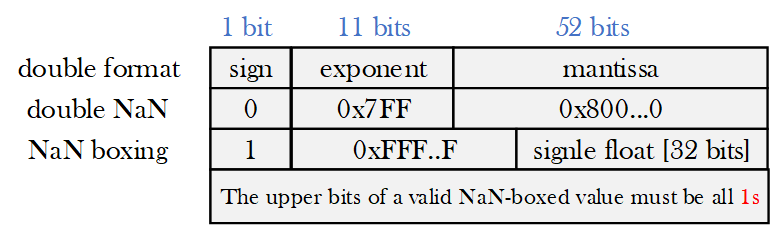 Теперь, когда мы закрыли необходимый минимальный теоретический бэкграунд по вопросам представления и обработки NaN, вернемся к началу нашей статьи, а именно - что же такое NaN boxing и зачем он нужен?