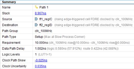 Рассмотрим каким образом Vivado выполняет временной анализ пути между двумя триггерами внутри FPGA.