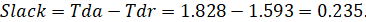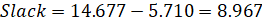 Slack рассчитывается, использую уравнение 10, и равен