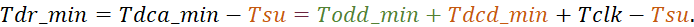 Задержка Tdsu соответствует времени установки для сигнала на входе SER микросхемы 75HC595 относительно ее тактового входа SRCLK. Тогда уравнение для Slack можно записать в виде: