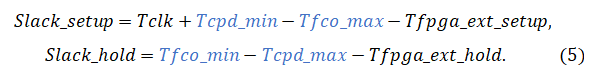 Объединим все слагаемые, описывающие задержки вне FPGA, в одну переменную и получим выражение для Slack при анализе по Setup:
