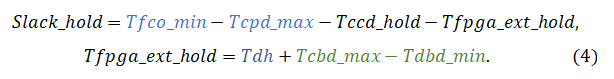 Объединим все задержки вне FPGA в одну переменную и получим окончательное выражение для Slack при анализе по Hold: