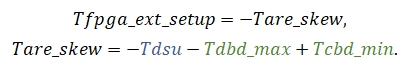 Значение Tfpga_ext_setup задается конфигурацией печатной платы и внешними микросхемами и с его помощью можно оценить предельно допустимую величину Tare_skew, при которой временные ограничения все еще будут выполнены. Это соответствует ситуации, когда значение Slack_setup равно нулю, откуда получаем: