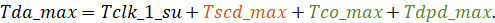Для начала рассмотрим, каким образом выполняется анализ для проверки ограничения на максимальное время распространения (Setup). Пусть запускающий фронт появляется на ножке CLK_1 FPGA в момент времени Tclk_1_su. Запишем уравнения для расчета фактического времени прибытия данных (см. рисунок 1):