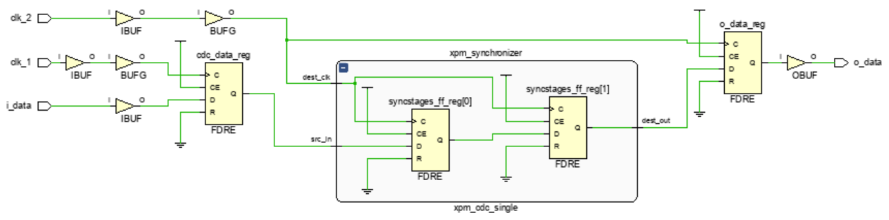 Таким образом, триггер sync_data_reg может попасть в метастабильное состояние, но, если он быстро из него выйдет, то метастабильность не появится на выходе o_data_reg и будет локализована внутри синхронизатора.