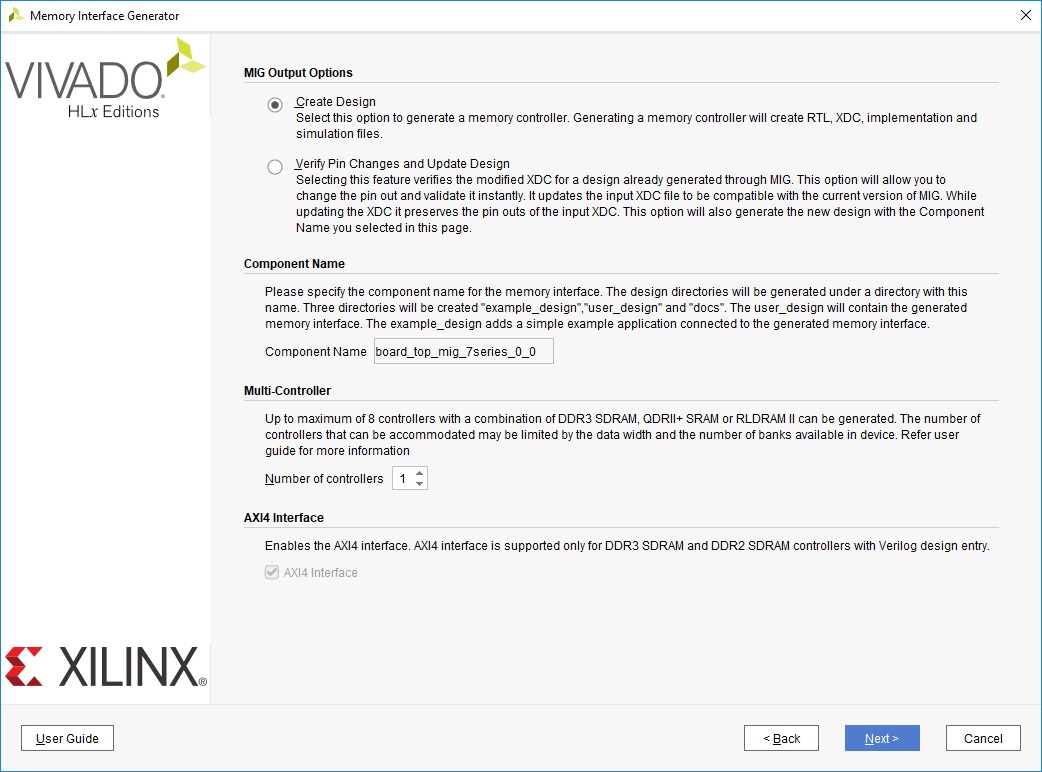 Память DDR очень часто является неотъемлемой частью многих проектов и охватывает широкий круг задач, потому включение в проект контроллеров памяти просто необходимо. MIG 7 Series поддерживает всю седьмую серию FPGA Xilinx, а также SoC Zynq-7000, и позволяет подключать DDR3 и DDR2 SDRAM, QDR II + SRAM, RLDRAM II / RLDRAM 3 и LPDDR2 SDRAM. [1]. Однако при сборке процессорной подсистемы с Microblaze возможно настроить контроллер для работы только с DDR3 и DDR2 SDRAM. Вероятнее всего, это связано с наличием AXI4 интерфейса только для этих конфигураций памяти и отсутствием такового у других. Однако эта тема выходит за рамки данной статьи, но, возможно, будет затронута в будущем.