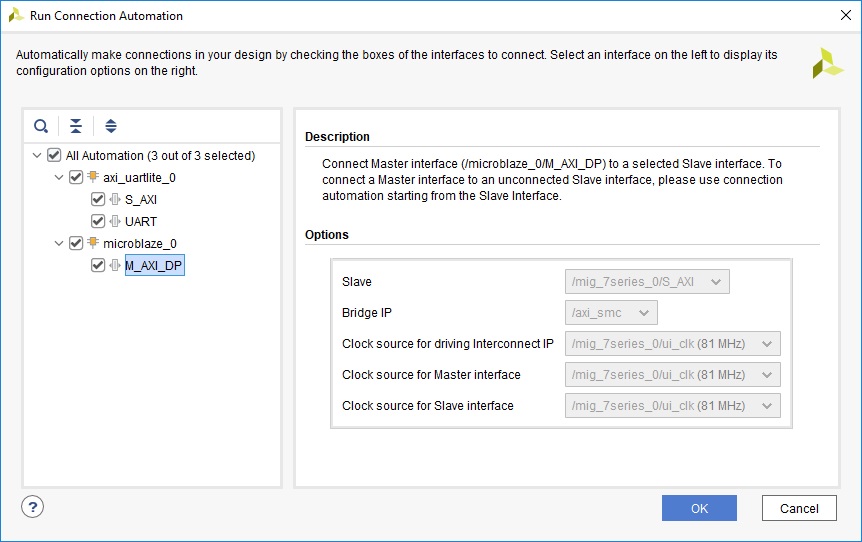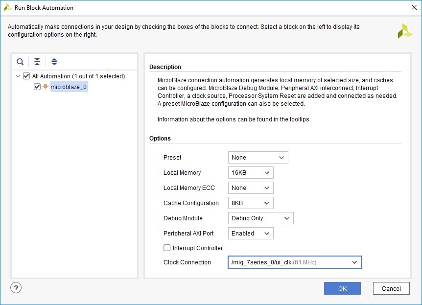 Рисунок 22 – Run Connection Automation для кэша MicroBlaze