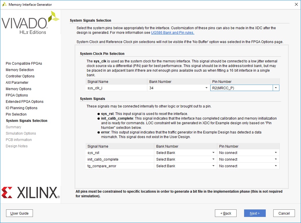 Установленная частота соответствует частоте, сгенерированной MIG 7 для пользовательского интерфейса. UART нам понадобится позже для теста памяти