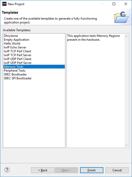 На второй вкладке выберем шаблон проекта Memory Tests (рисунок 28).
