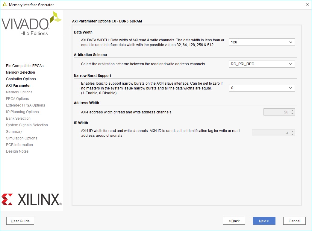Рисунок 10 – Вкладка AXI Parameters