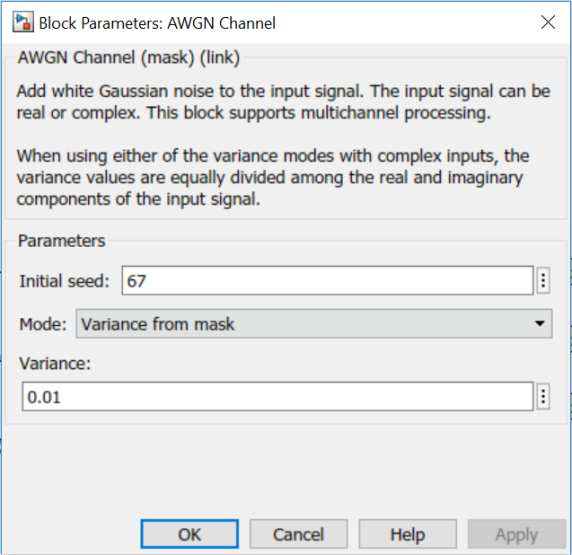 - · AWGN Channel – добавляет белый шум заданной мощности к сигналу.