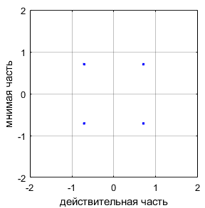 Набор точек, который получится, если представить символы на комплексной плоскости, называется созвездием. Созвездие для QPSK представлено на рисунке 1-а).
