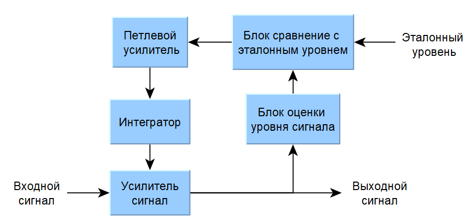 , где Aref– эталонное значение уровня. Например, если разность положительная, значит уровень сигнала ниже эталонного значения и сигнал должен быть усилен.