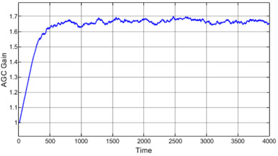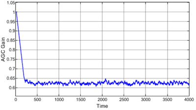 Рисунок 14. Зависимость коэффициента усиления АРУ от времени в тактах