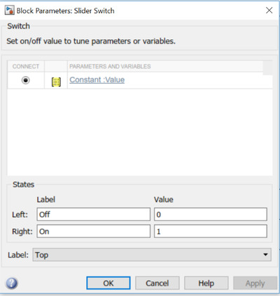- · Switch – привязывается к блоку Constant и дает возможность интерактивно включать и выключать АРУ.