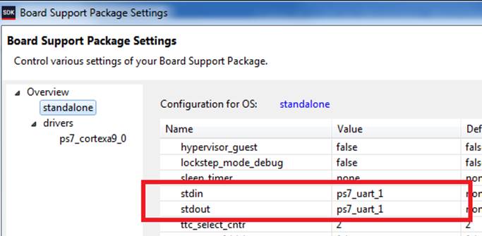 Для начала убедимся, что мы все правильно настроили. Для этого сделаем новый проект с “Hello World”. Идем File→New→Application Project вводим название, какое хотите, больше ничего не заполняем (Рисунок 2). Нажимаем “Next”, выбираем “Hello World” и нажимаем “Finish”. На отладочной плате MiniZed на преобразователь UART→USB выведен UART1 процессорной системы. Нужно выбрать именно его, для этого идем в папку Hello_bsp (либо ваше название вместо Hello) нажимаем модифицировать BSP (Рисунок 3). Выбираем UART1 (Рисунок 4). Нажимаем “OK”.