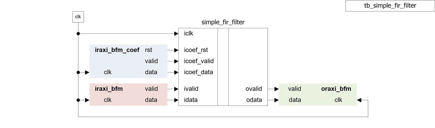Верхним уровнем тестового окружения в данном примере является файл tb_simple_fir_filter.sv:
