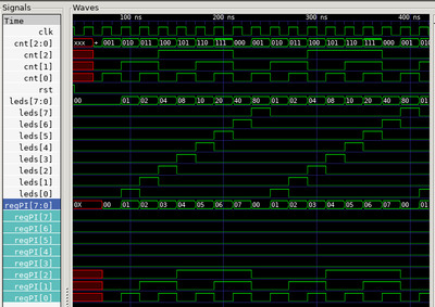 Сравним полученные схемы. В схеме собранной по первому модулю есть только два мультиплексора, которые явно управляются сигналом RST. И это мультиплексор shift_cnt и rledout. Сброс счетчика count происходит не явно.