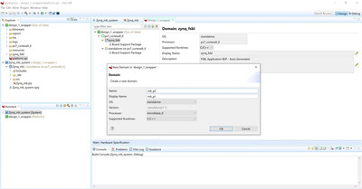 Это откроет новый проект приложения и системный проект для платформы. Под платформой вы увидите, что домен Zynq уже существует вместе с FSBL.