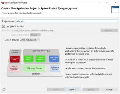 После запуска Vitis первое, что мы хотим сделать, это создать проект приложения. Это также создаст новый системный проект - именно к этому системному проекту мы добавим домены.Первый домен будет создан в платформе автоматически при создании проекта приложения.