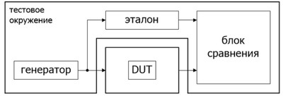 Схема подключения тестируемого компонента к тестовому окружению показана на рисунке 1.1.