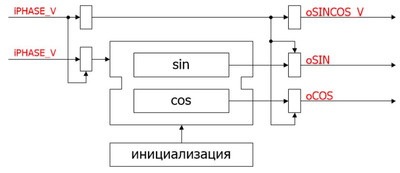 Ядро компонента – память, в которой хранятся значения синуса/косинуса. Для заполнения памяти используется функция инициализации.