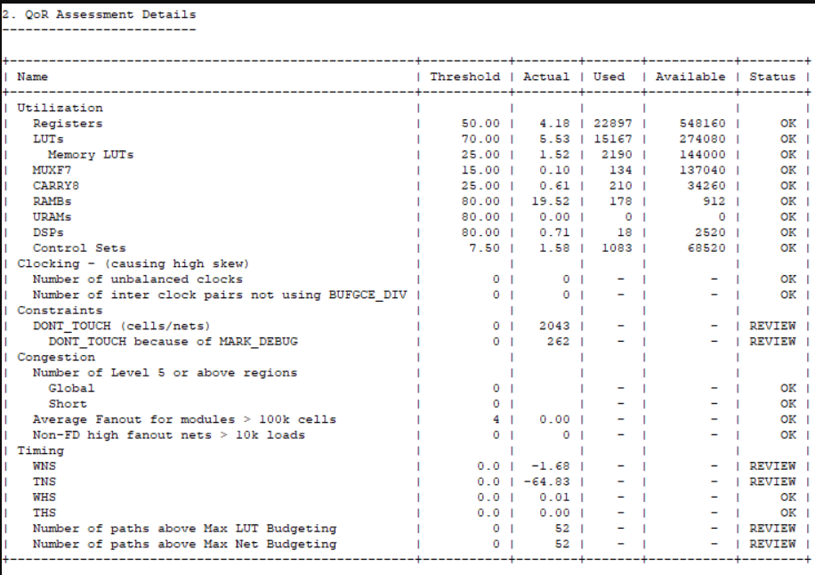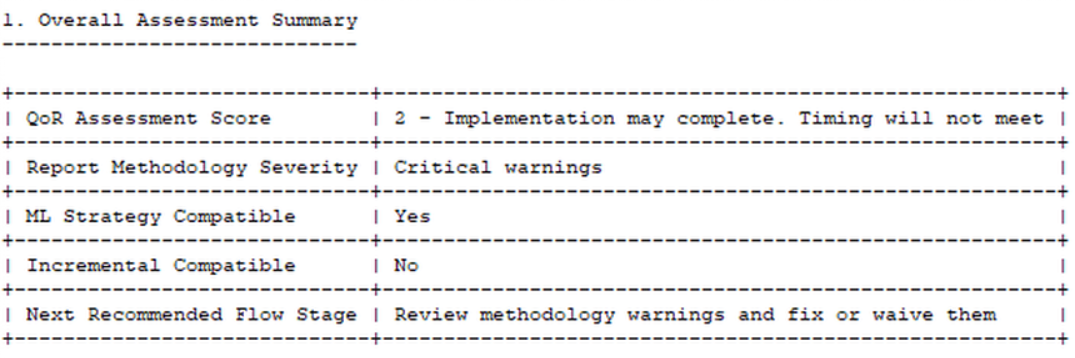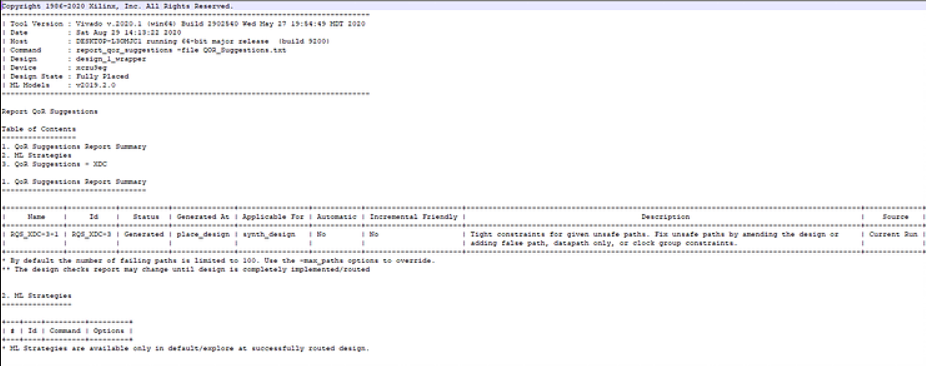 Хотя в отчете QoRA могут быть указаны возможные проблемы, дополнительно необходимо провести оценку дизайна (place_design - выполнить в окне TCL) и получить отчет QoR Suggestions, прежде чем предпринимать какие-либо действия.