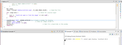 Так вот, когда мы вызываем дебаг и бежим по программе доходим до команды imshow консоль SDK выдает ошибку "cannot open display" и выполнение стопорится на этом шаге.