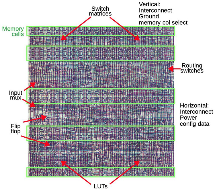 Реверс инжиниринг - тема очень занятная. На этой неделе появилась статья о том, как была устроена первая ПЛИС в мире от компании Xilinx, но самое любопытное, что в стате не просто картинки с LUT и триггерами, а полноценные фотографии кристалла этой ПЛИС с объяснением микроархитектуры.
