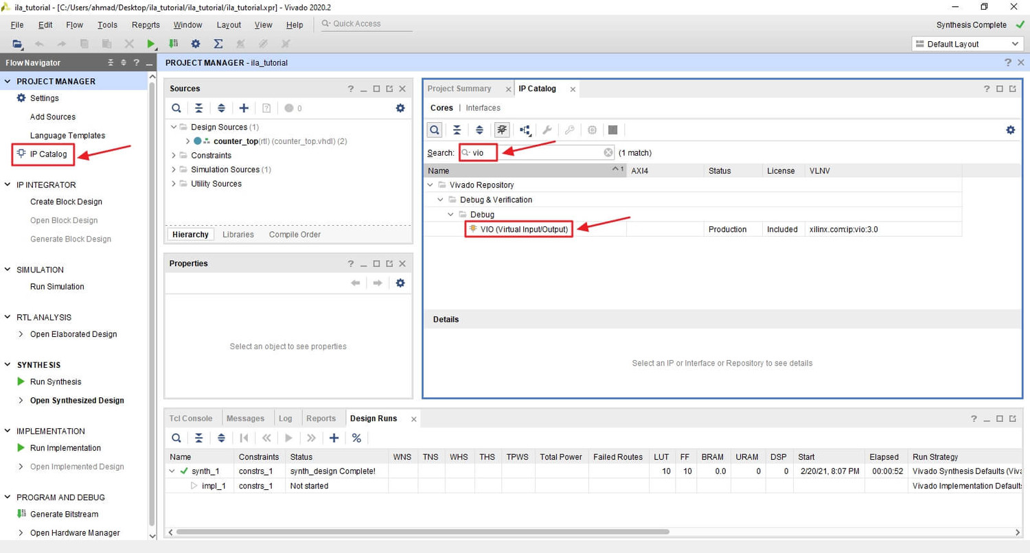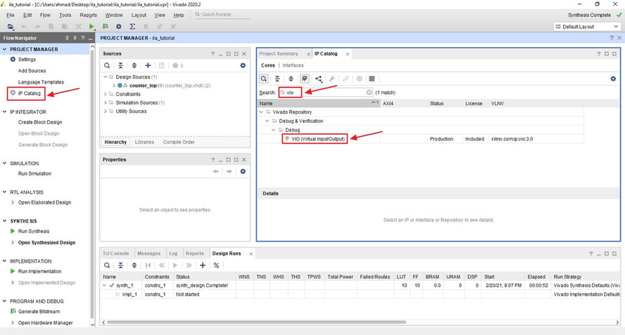Использование интегрированного логического анализатора (ila) и виртуального ввода-вывода (vio)