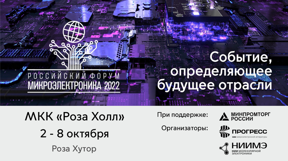 Со 2 по 8 октября 2022 года на горном курорте «Роза Хутор» (г. Сочи) пройдет основное информационное событие отечественной микро- и радиоэлектронной отрасли – Российский форум «Микроэлектроника 2022». Участников ждет насыщенная рабочая программа в условиях...