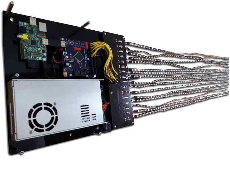 Как вы знаете, мы тут не так давно провели парочку светодиодных стримов, на которых делали мигалку на управляемых светодиодах WS2812B, скомпонованных в виде ленты. Не так давно на портале hackster.io появилась интересная статья/туториал, в котором автор сделал из нескольких светодиодных лент информационное табло. В целом ни чего особо выдающегося, но выглядит интересно и этот проект можно рассматривать как вполне себе идею/продолжение/подготовку к разработке полноценного экрана на основе светодиодной ленты. Думаю таке проекты уже есть, и если что-то знаете, оставьте ссылочку на них в комментариях
