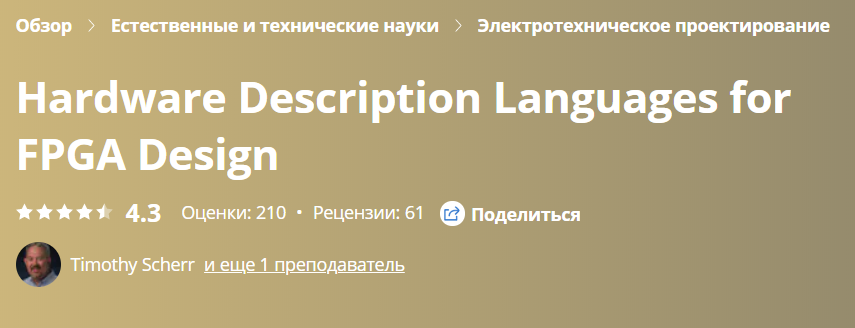 На портале Coursera появился бесплатный тренинг по языкам описания аппаратуры Hardware Description Languages (HDL) от Колорадского университета. Во время курса Вам предстоит прослушать несколько лекций и выполнить ряд домашних заданий. В курсе рассма...