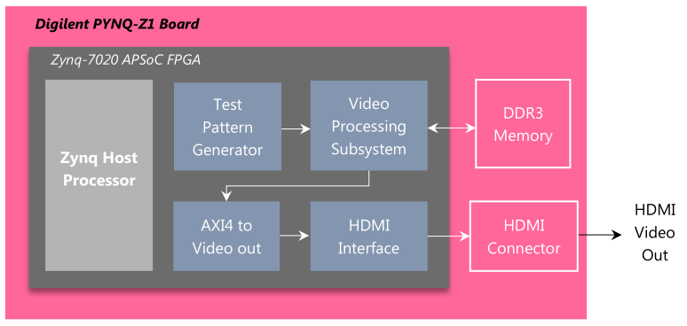 Компания Logitronix подготовила руководство, в котором рассмотрена реализация подсистемы обработки видео на плате Digilent PYNQ-Z1 в Vitis/Vivado 2020.1. Этот проект использует Xilinx Video Test Pattern Generator IP в качестве источника видео AXI4 для подсистемы обработки видео. Видеопоток проходит через серию IP-блоков обработки видео к выходному интерфейсу платы HDMI и монитору HDMI
