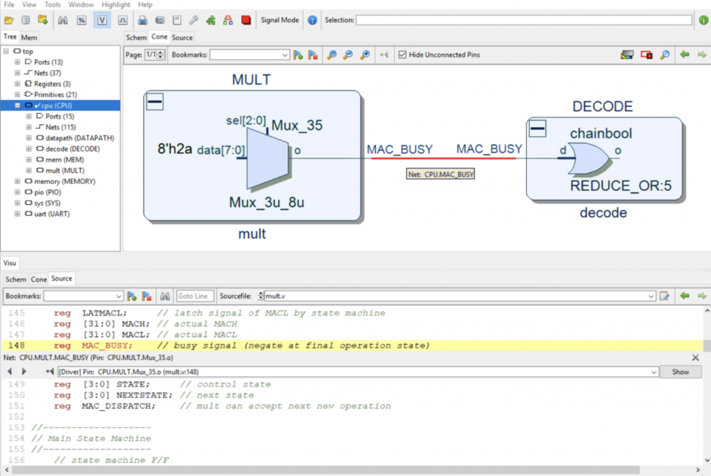 Понимание происходящего в проекте во многих случаях приводит к многочасовым простоям в попытке понять, что происходит внутри проекта, содержащего множество сложных компонентов RTL и IP-блоков. Глобальное схематическое представление, предоставляемое из коробки со стандартными средами проектирования от различных производителей ПЛИС, не особенно полезно. Прослеживание миллионов неразличимых связей очень сложно и отнимает много времени.