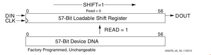 • SHIFT – порт команды выполнения сдвига DNA-номера. Временный регистр, доступный пользователю для чтения, представляет собой простой сдвиговый регистр.
