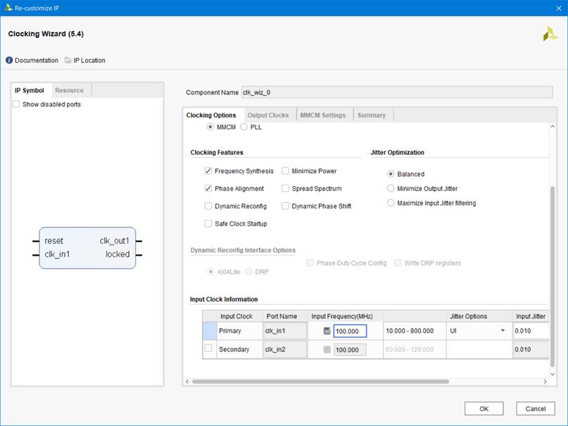 2. Устанавливаем входную тактовую частоту 100 МГц.