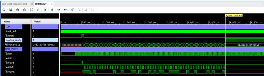 Наш проект собран, и теперь мы можем выполнить его моделирование (симуляцию). Если Вы обратили внимание, то при моделировании Вы можете указать значение, которое будет выдавать DNA_PORT. Для его модели оно является параметром.