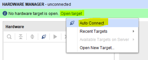 После окончания генерации файла прошивки FPGA открываем Hardware Manager: