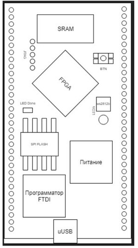 - Утвердили, что мезонинный модуль должен быть полностью автономным и должен содержать базовые компоненты: ПЛИС, программатор (как опция), модуль питания, ПЗУ, ОЗУ в виде статической/динамической памяти, кнопка, светодиод. Вся остальная периферия будет подключаться к несущей через PMOD и другие «устоявшиеся» коннекторы. Вариант совместимости с платами Raspberry, Terrasic, Arduino в процессе обсуждения.
