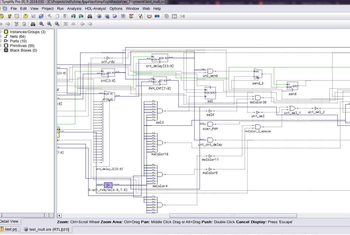 Начиная с этого момента “вечер перестал быть томным”, китаец начал показывать свой норов, а синтезатор вывалил кучу предупреждений, часть из которых, надо отдать должное, была исключительно по существу вопроса. Как уже, наверное, стало понятно китаец для синтеза и размещения использует Synplify.